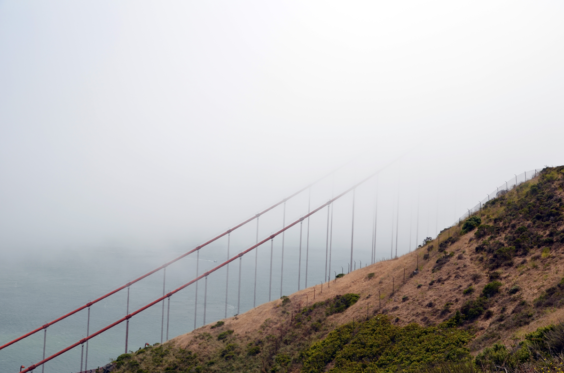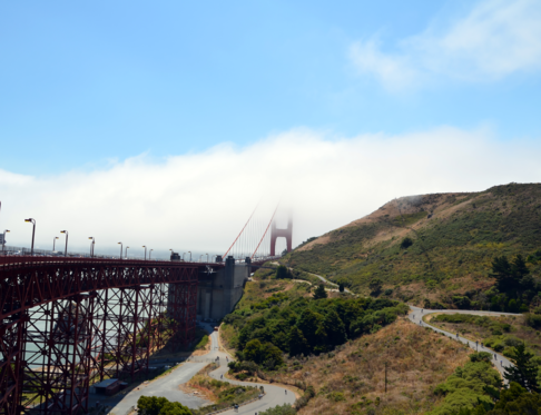 En arrivant sur le côte Nord, on fuit rapidement la foule qui s’accumule à Vista Point. On passe sous le pont et on rejoint notre premier sentier de randonnée. C’est parti pour Battery Spencer, une petite balade d’une quinzaine de minute qui permet de rejoindre un point de vue assez sympa sur le pont. On se retrouve en fait au-dessus avec la skyline de la ville en arrière-plan. Bon alors quand il y a du brouillard, forcément la vue est différente ! Mais c’est très sympa quand même, et notre petit timelapse vous donne un aperçu de la vitesse du fog ! Battery Spencer fait aussi partie des vestiges de l’occupation des terres par l’armée américaine. On y trouve des ruines des installations et quelques explications historiques.
