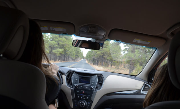 La deuxième chose surprenante en arrivant à l’entrée du parc, c’est qu’on traverse une forêt ! C’est la Kaibab National Forest qui s’étend sur près de 6,500 km² de part et d’autre du Grand Canyon. Quand on voit les images du Grand Canyon, on voit de la roche, c’est très minéral. Et pourtant, il y a beaucoup de vert et d’arbres tout autour, en particuliers des pins, même si cela varie selon l’altitude.