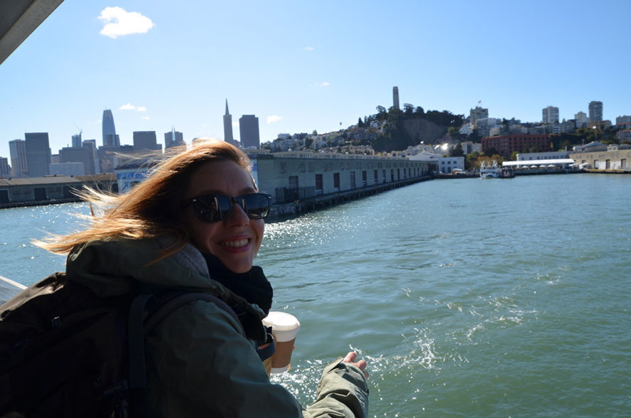 Et avant de découvrir le lieu, un tour en bateau sur la baie nous attend et ça, c’est toujours chouette ! Et c’est sous le soleil qu’on embarque. Comme toutes les traversée en ferry sur la baie, la vue est splendide! Les gratte-ciels de Financial District, les collines qui se dessinent petit à petit, le Golden Gate qu’on aperçoit au loin… On en prend déjà plein les yeux avant même d’être arrivé.